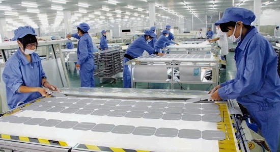 鋁合金邊框注膠 →在輸入?yún)^(qū),將鋁邊框、角碼裝至電池板上→自動輸入至組框區(qū)(對組件的四個角同時組框,刀對... Leadr More